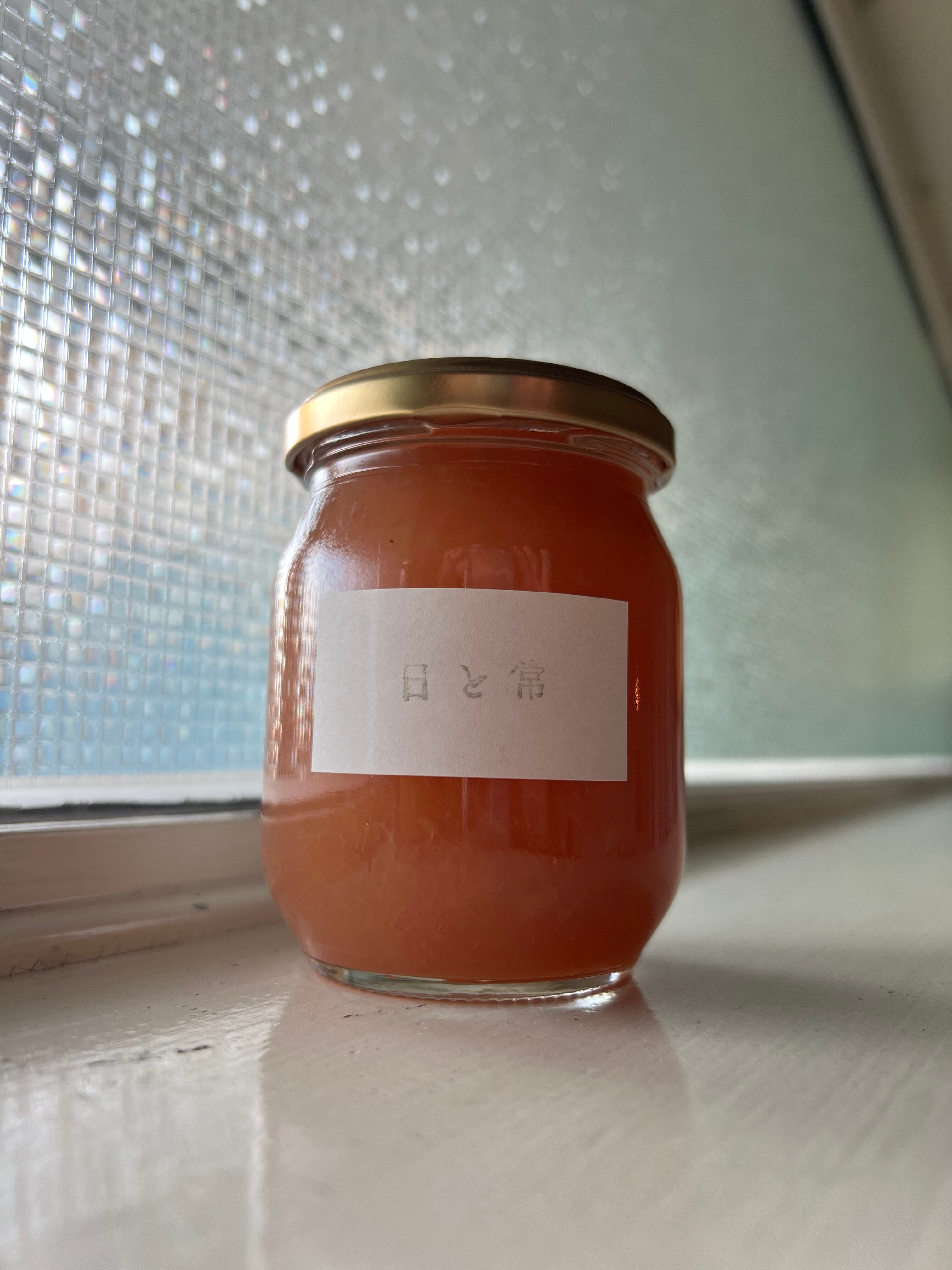 福岡県うきは市の筒井農園の桃はとても甘くて有名です。筒井さんは桃を何種類も作られていて、その中の最後の品種「幸茜」という普通の白桃よりしっかりとした果肉の固さのある品種を白ワインで炊き上げました。