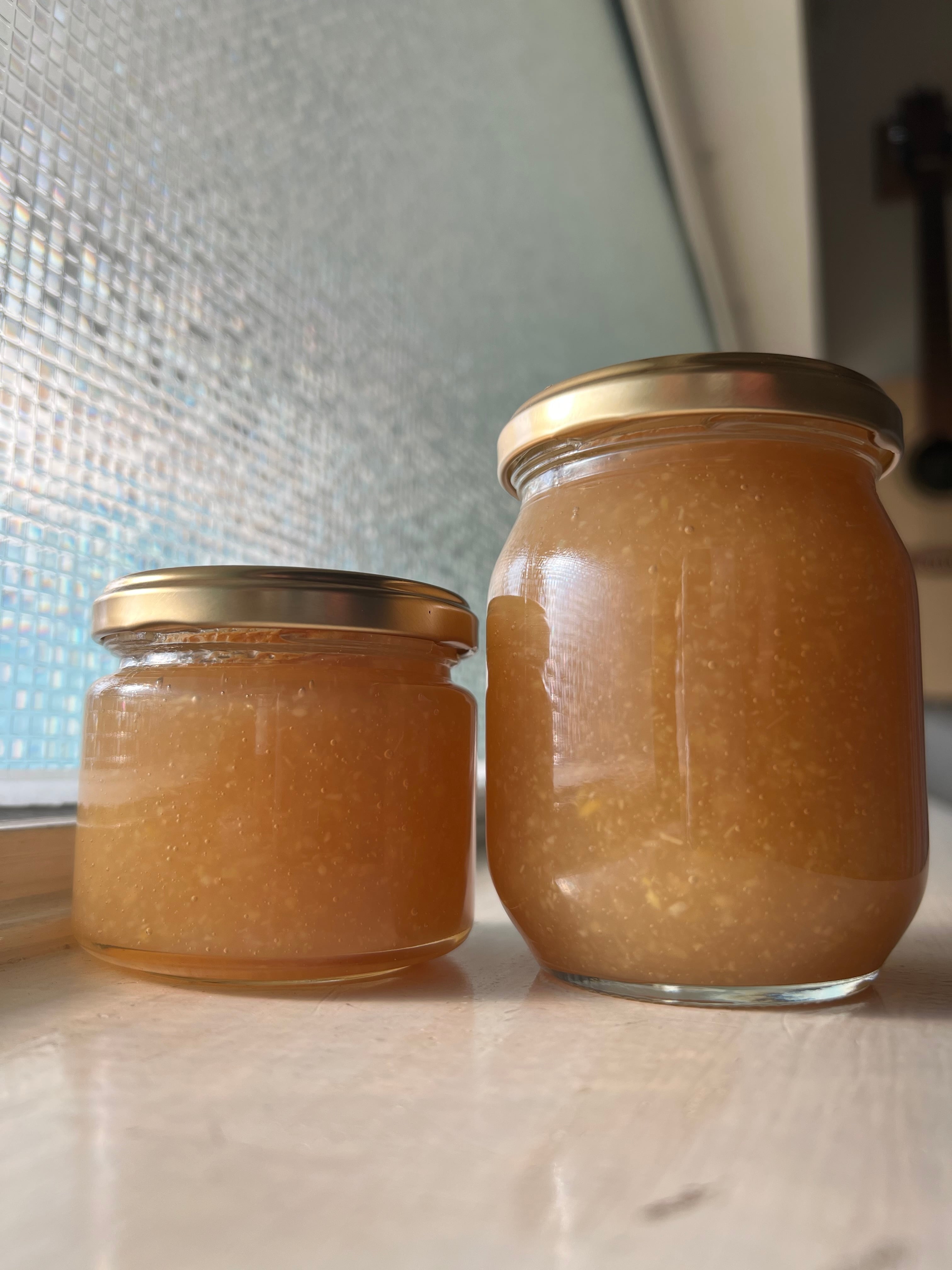 仕上げに白ワインとレモン汁を加えて、皮の食感豊かな、生姜がピリリと効いた攻めたコンフィチュールにしています。